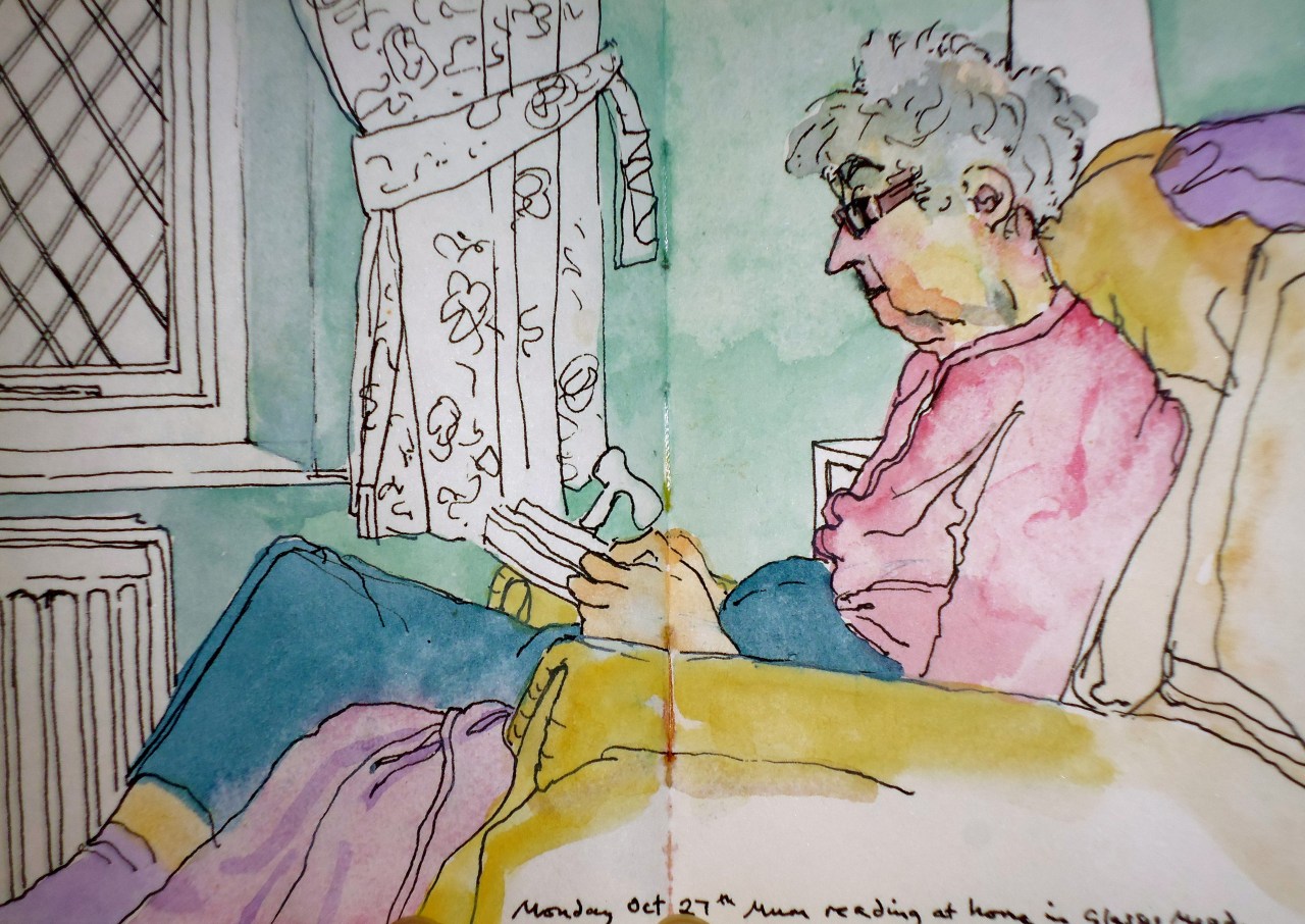 Today is the first day of my third ’30 Day Challenge’. My challenge project this time is to ‘Draw More’ and by ‘more’ I mean I am going to try and draw more than just trees! I love trees and I draw them all the time but I want to try and push myself out of my ‘tree’ comfort zone and draw something else. I have made a start this week at my mums, drawing her reading in her chair. I have given her a cauliflower ear, large hands and too long legs, but hey!