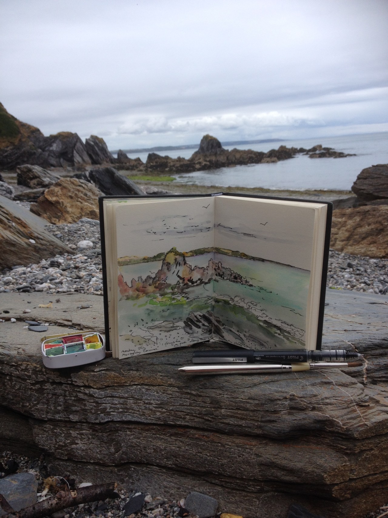 I love being by the sea, whether it is sunny or overcast. In happy times and times of great sadness. Looking down from the craggy cliffs in rugged Cornwall, or sitting on the pebbles at Southwick beach behind the industrial Shoreham port buildings in Sussex. I find great solace in the sight and sound of the curling waves endlessley surging across the stones.
